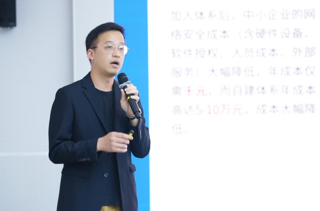 李偉浩介紹“1+N+X”城市分布式網(wǎng)絡(luò)安全防護體系。/主辦方供圖