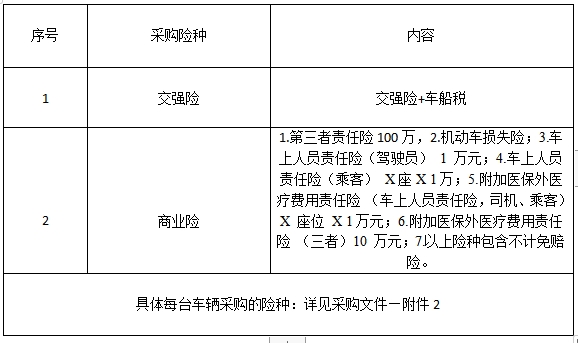 (一)項目名稱:中心部分車輛購買保險項目(第二次)。