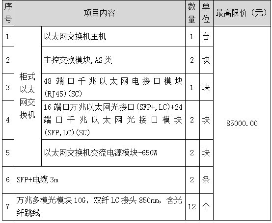 1、標(biāo)的名稱:6號(hào)樓辦公網(wǎng)匯聚交換機(jī)(備機(jī))更換項(xiàng)目