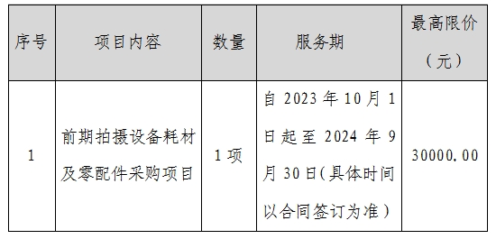 1、標的名稱:前期拍攝設(shè)備耗材及零配件采購項目
