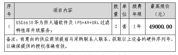 2024年華為防火墻軟件升級服務(wù)采購項目采購公告