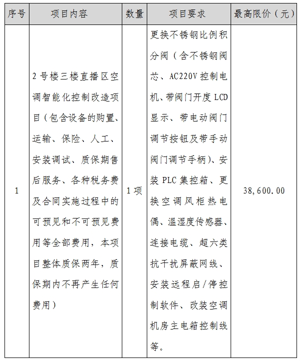2號(hào)樓三樓直播區(qū)空調(diào)智能化控制改造項(xiàng)目采購公告