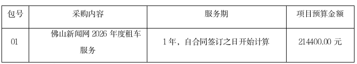 佛山新聞網(wǎng)2026年度租車服務(wù)競(jìng)爭(zhēng)性磋商公告