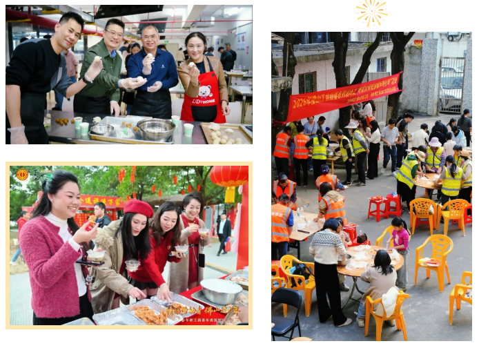 年夜飯正準備著,趣味游園、送揮春、年味小吃等區(qū)域早已熱鬧起來:書法家現(xiàn)場揮毫送福,粵菜大師手把手教學,職工們穿梭打卡,手里攥著剛寫的春聯(lián),嘴里嘗著地道小吃,臉上滿是笑容?!邦^一回和這么多同事吃年夜飯,跟大家的感情更熟悉了!” 來自遠輕鋁業(yè)(廣東)有限公司的官秋婷道出了大家的心聲。