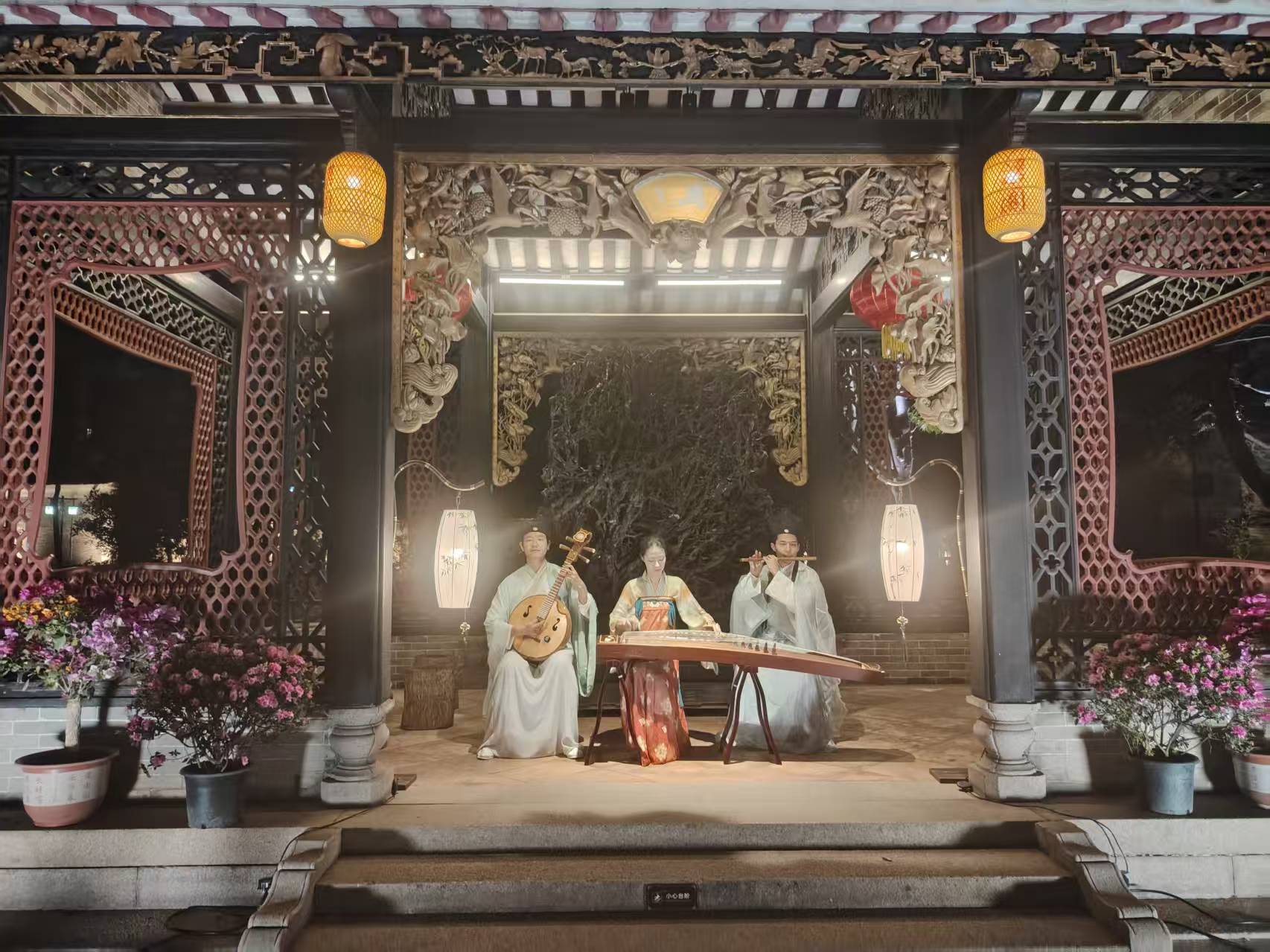 群星草堂,蘇州評(píng)彈的吳儂軟語(yǔ),三弦叮咚,將江南的煙雨帶進(jìn)嶺南的庭院。