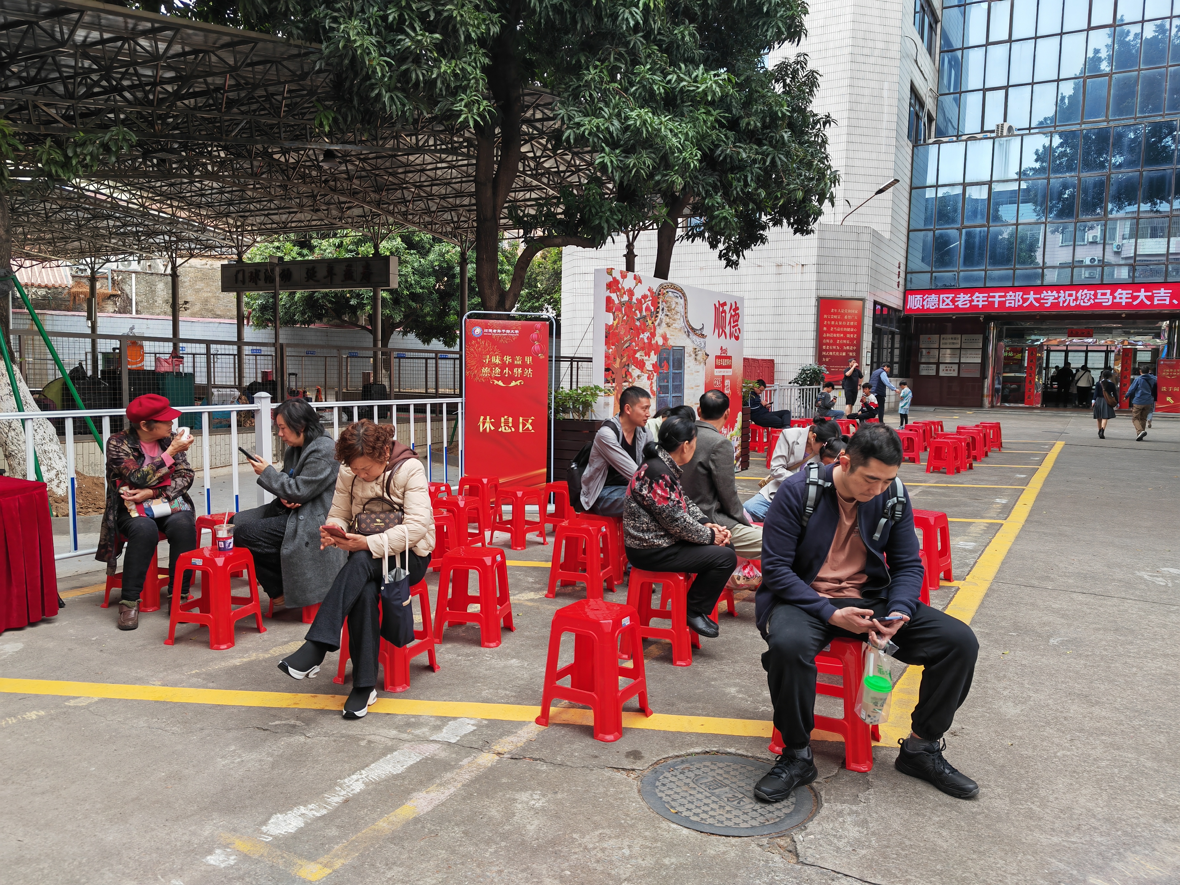面對節(jié)假日激增的人流量以及游客“行李沉、如廁難、歇腳難”等現(xiàn)實(shí)痛點(diǎn),順德區(qū)老年干部大學(xué)迅速響應(yīng),劃定專門區(qū)域臨時(shí)開放為公共服務(wù)空間。